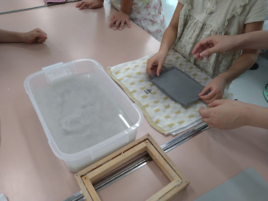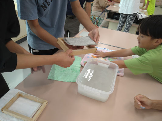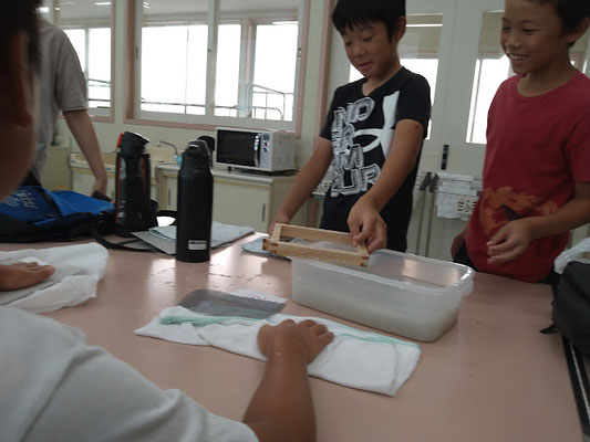 ※幡山西小学校との話合いでは、紙すき体験学習で作成した「はがき」を夏休みの自由研究として提出してよいことになっています。
