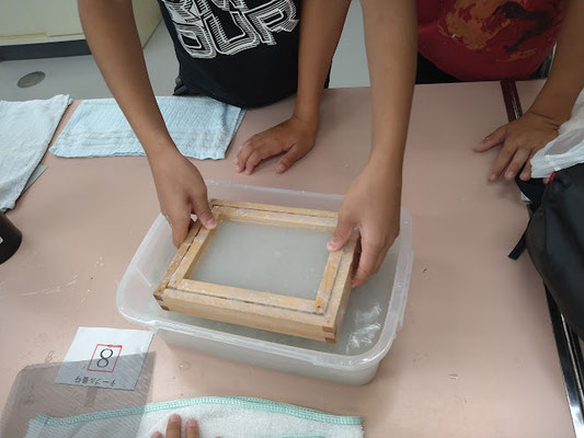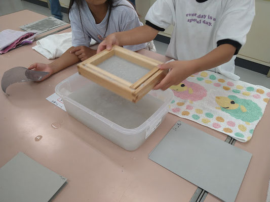 紙すき体験学習は資源ゴミとして回収した紙(段ボールや新聞、雑誌等)を溶かして再び紙に生まれ変わらせ、教材などに活用するリサイクル工程を学習する講座です。具体的には、参加者全員が紙を溶かして 紙すき を行い、再生した紙で「はがき」を作る工程を体験してもらいます。